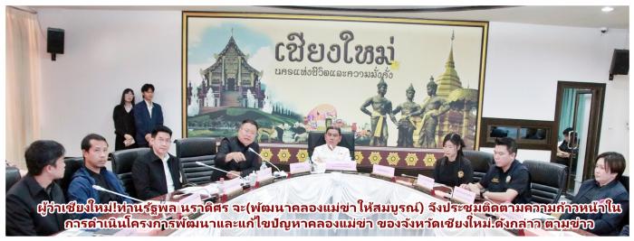 ผู้ว่าเชียงใหม่!ท่านรัฐพล นราดิศร จะ(พัฒนาคลองแม่ข่าให้สมบูรณ์) จึงประชุมติดตามความก้าวหน้าการดำเนินโครงการพัฒนาและแก้ไขปัญหาคลองแม่ข่า ของจังหวัดเชียงใหม่.ดังกล่าว ตามข่าว
