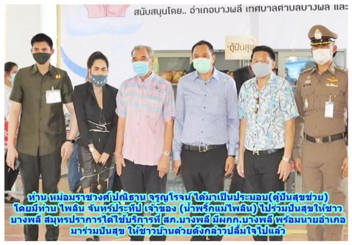 ชาวอำเภอบางพลีสุดปลื้มใจ ท่าน หม่อมราชวงศ์ ปณิธาน จรูญโรจน์ ได้เป็นประธานมอบ(ตู้ปันสุข) ณ ที่สถานีตำรวจภูธรบางพลี จ.สมุทรปราการ มีท่าน พ.ต.อ.พีรศักดิ์ รอดบน ผกก.สภ.บางพลี และ ท่าน ไพลิน จันทร์ประทีป เจ้าของสูตรน้ำพริ้กดัง(มะขาม แม่ไพลิน) ไปร่วมทำบุญบริจาคด้วยดังกล่าวตามข่าว