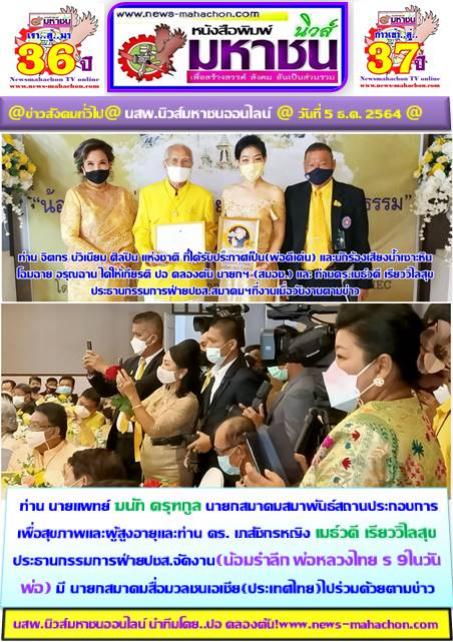 ที่ สโมสรราชนาวี กทม. เมื่อวันที่ 4 ธันวาคม 2564 ท่าน นายแพทย์ ฆนัท ครุฑกูล นายกสมาคมสมาพันธ์สถานประกอบการเพื่อสุขภาพและผู้สูงอายุ ได้จัดงาน (น้อมรำลึกพ่อหลวงไทย ร่วมใจเชิดชูวัฒนธรรม) โดยเชิญท่านอิทธิพล คุณปลื้ม มาเป็นประธานในพิธีเปิดแต่ไม่มาให้ตัวแทนที่เป็น(ผู้ตรวจการกระทรวง)มาแทนโดยมีท่าน ดร. เภสัชกรหญิง เมธ์วดี เรียววิไลสุข ประธานกรรมการฝ่ายปชส.จัดงาน เป็นผู้ดำเนินรายการ(พิธีกรงาน)มีท่านธนกฤต กลิ่นนาค นายกสมาคมสื่อมวลชนเอเชีย(ประเทศไทย) พร้อมด้วยท่าน สามารถ งามประดิษฐ์ (อุปนายก ฝ่ายกิจการพิเศษ) และ ท่าน ดร.โรจนศักดิ์ แสงธศิริวิไล (ที่ปรึกษาฯสมาคมสื่อฯ) มาร่วมงานด้วยโดยท่านผู้ตรวจกระทรวงวัฒนธรรมได้เป็นประธานในพิธีมอบใบประกาศเกียรติคุณให้กับผู้ที่ได้รับ(เชิดชูเกียรติพ่อดีเด่น)ของสมาคมฯด้วยดังกล่าว ณ.ที่ สโมสรราชนาวี หลังวัง ท่าช้าง ริมน้ำเจ้าพระยา กทม.ไปแล้วตามข่าว(เมย์ มหาชน - รายงาน / มาด มหาชน – นำเสนอข่าว)เข้าไปดูข่าวได้ที่...www.news-mahachon.com