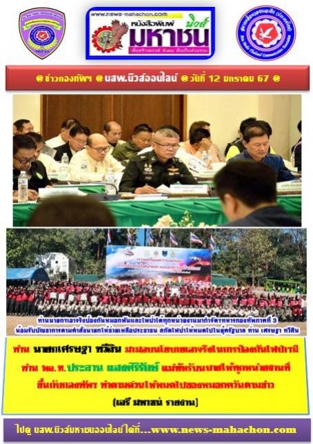 ต่อมาท่าน พล.ท. ท่าน ประสาน แสงศิริรักษ์ แม่ทัพภาคที่ 3 ได้เผยกับคนข่าวว่า ตนเอง ได้ร่วมการประชุมฯ (ในการแก้ไขปัญหาหมอกควัน ไฟป่าและการเชื่อมโยงระบบขนส่งและเดินทางในพื้นที่จังหวัดเชียงใหม่ด้วย) โดยมี ท่าน เศรษฐา ทวีสิน นายกรัฐมนตรี เป็นประธาน ณ ห้องประชุม กองบิน 41 จังหวัดเชียงใหม่ โดย มีท่าน นายกรัฐมนตรีเป็นประธานฯและท่านได้ขอให้กองทัพบกพร้อมด้วย กอ.รมน.สนับสนุนกำลังพลในการรณรงค์ ประชาสัมพันธ์สร้างการรับรู้ให้กับประชาชนในพื้นที่ร่วมกับส่วนราชการต่างๆ สนับสนุนยานพาหนะในการขนเศษวัสดุทางการเกษตรจากพื้นที่เพาะปลูกมายังศูนย์รับซื้อวัสดุและ นำอากาศยาน จาก ทบ.ปฏิบัติภารกิจร่วมกับหน่วยงานต่างๆ รวมทั้งได้ร่วมตรวจความพร้อมการปฎิบัติการฝนหลวง เพื่อบรรเทาปัญหาหมอกควันและฝุ่นละออง ณจุดจอดอากาศยานกรมฝนหลวง และการบินเกษตร กองบิน41และมอบหมายให้พลตรีวิทยา แก้วพรม รองแม่ทัพภาคที่ 3 ติดตามคณะตรวจเยี่ยมศูนย์ปฏิบัติการไฟป่าเชียงใหม่ (ฐานฤาษี) โดยได้ข้อสรุปว่าการลดจุดความร้อน (Hotspot) และการทำแนวกันไฟต้องอาศัยการร่วมแรงร่วมมือกันอย่างจริงจัง ประสานงานอย่างใกล้ชิดทั้งจากหน่วยงานภาครัฐและภาคประชาชน เพื่อให้การแก้ไขปัญหาได้อย่างยั่งยืน และ รัฐบาล เป็นส่วนหนึ่ง ในการแก้ไขปัญหา โดย มีกระทรวงทรัพยากรธรรมชาติและสิ่งแวดล้อม เป็นหน่วยงานหลัก ส่วนไหนที่ขาดแคลน ยุทโธปกรณ์ ก็ใช้การบูรณาการร่วมกัน และ เน้นย้ำ ให้ ทุกหน่วยงาน ดูแลความปลอดภัย และ ขวัญกำลัง ใจของ จนท.ที่ปฏิบัติงานหลักจากนั้น ได้ร่วมทำแนวกันไฟ ชมสาธิต การฝึกดับไฟป่า และการชมสาธิตการดับไฟป่า ทางอากาศ เพื่อให้คณะฯได้เห็นภาพการปฏิบัติในการปฏิบัติงานของทุกภาคส่วนที่เกี่ยวข้อง ตามข่าวดังกล่าว (เสรี มหาชน – รายงาน ) ศูนย์ข่าวภาคเหนือนสพ.นิวส์มหาชนออนไลน์ทั่วโลกนำเสนอข่าวเข้าไปดูข่าวได้ที่...www.news-mahchon.com
