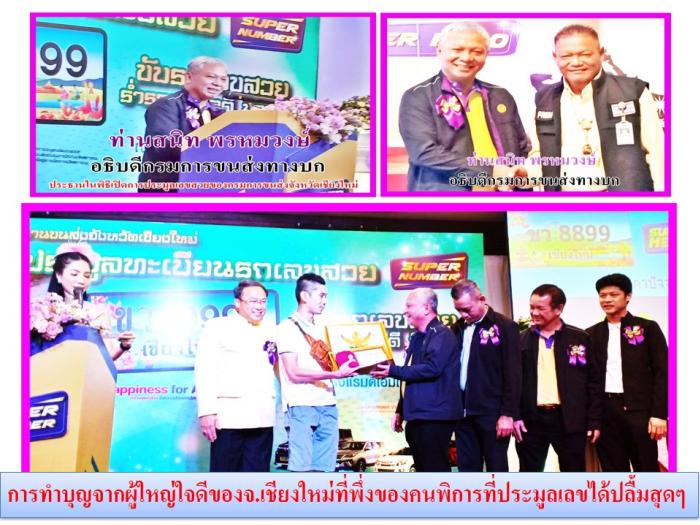 อธิบดีกรมการขนส่งฯปลื้มใจขนส่งเชียงใหม่จัดประมูลเลขสวยได้ ผู้ใหญ่ใจดี ช่วยทำบุญเกินเป้าในเศรษฐกิจขาลงแบบนี้มีคนทำบุญ13 ล้านกว่าบาทได้เงินเข้ากองทุน ปลื้มใจไปแล้ว!